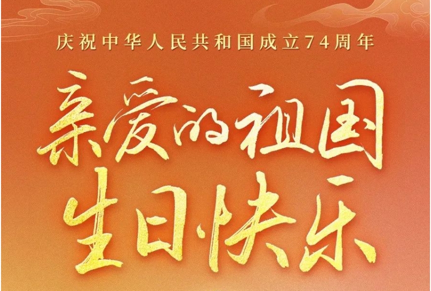 74年風(fēng)雨兼程74載山河巨變一起祝福偉大祖國生日快樂、繁榮昌盛!今天之中國我為你驕傲目光所至家國共好祝親愛的祖國生日快樂!
