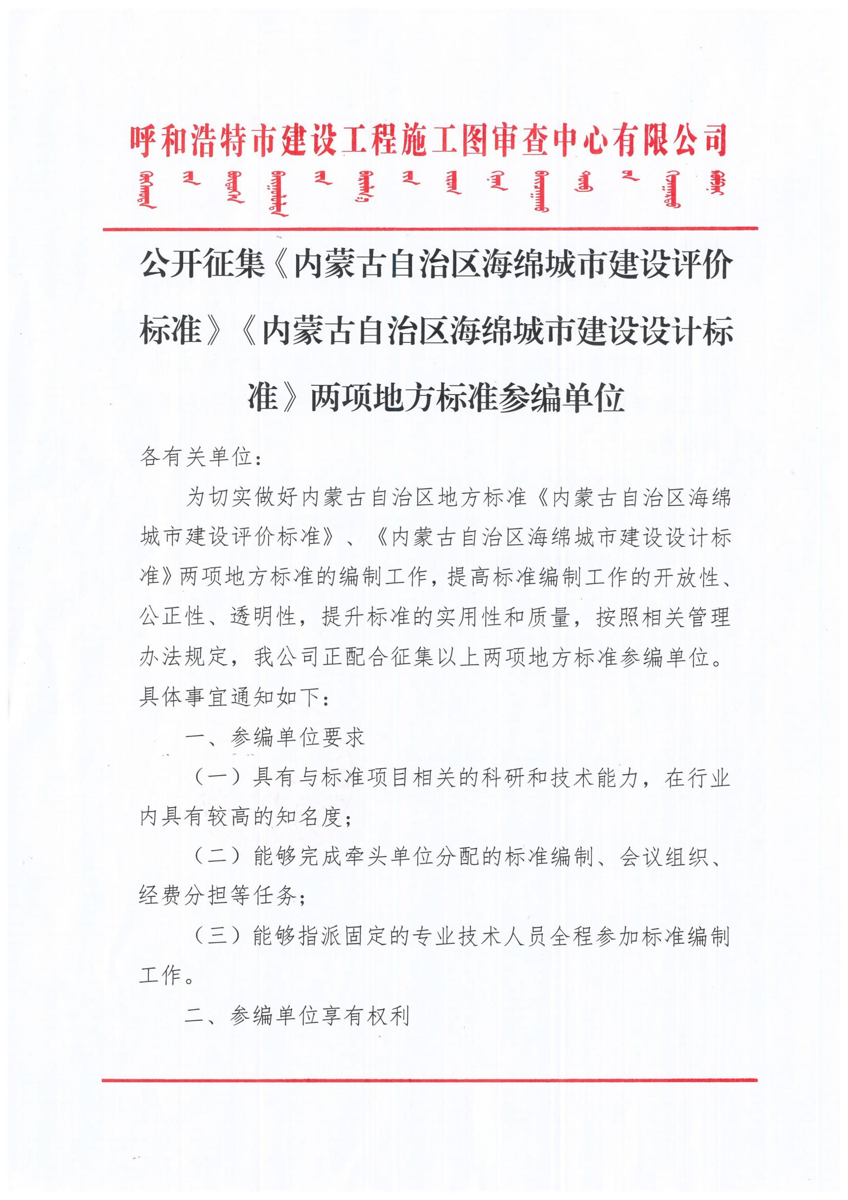 公開征集《內(nèi)蒙古自治區(qū)海綿城市建設(shè)評價標(biāo)準(zhǔn)》 《內(nèi)蒙古自治區(qū)海綿城市建設(shè)設(shè)計標(biāo)準(zhǔn)》 兩項地方標(biāo)準(zhǔn)參編單位